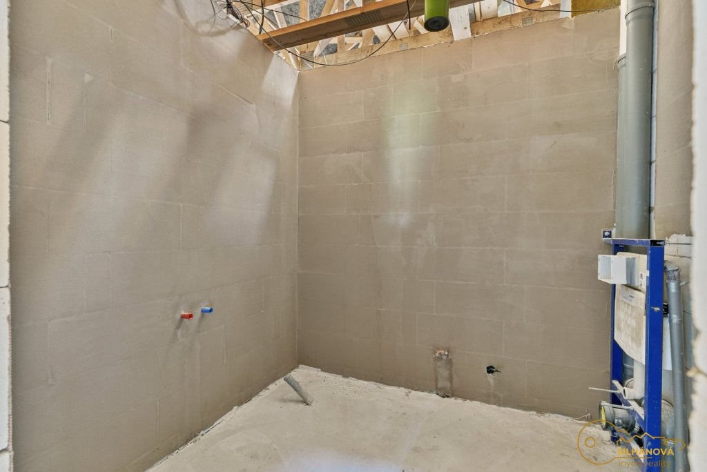 Dům s terasou nabízí užitnou plochu 121 m² a promyšlenou dispozici, která zaujme svou vzdušností i praktičností. K dispozici jsou dvě koupelny, prostorný obývací pokoj s možností instalace krbových kamen, plynule propojený s kuchyní (kuchyňská linka není součástí – ideální příležitost vytvořit si ji přesně podle vlastních představ), a krásná terasa orientovaná do klidné zeleně.